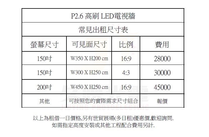 50 X 50 cm 租賃箱體模組 租賃價格: 一個單位 50 X 50 CM / 1000元 / 一場 含現場組裝架設. 最大租賃數量 450X250cm 共45片 最低租賃數量 100X200cm 共8片 貨車運送進撤場車資6000元 (中南部另計) 如需駐點場控人員費用另計4500/天 歡迎詢問 為服務公司機關客戶需求,我們提供長租方案,歡迎來電洽詢!