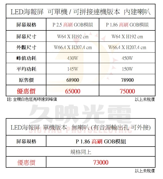久映光電LED電子海報屏可以折疊收納,便於運輸和安裝,適合臨時展示場所的需要。